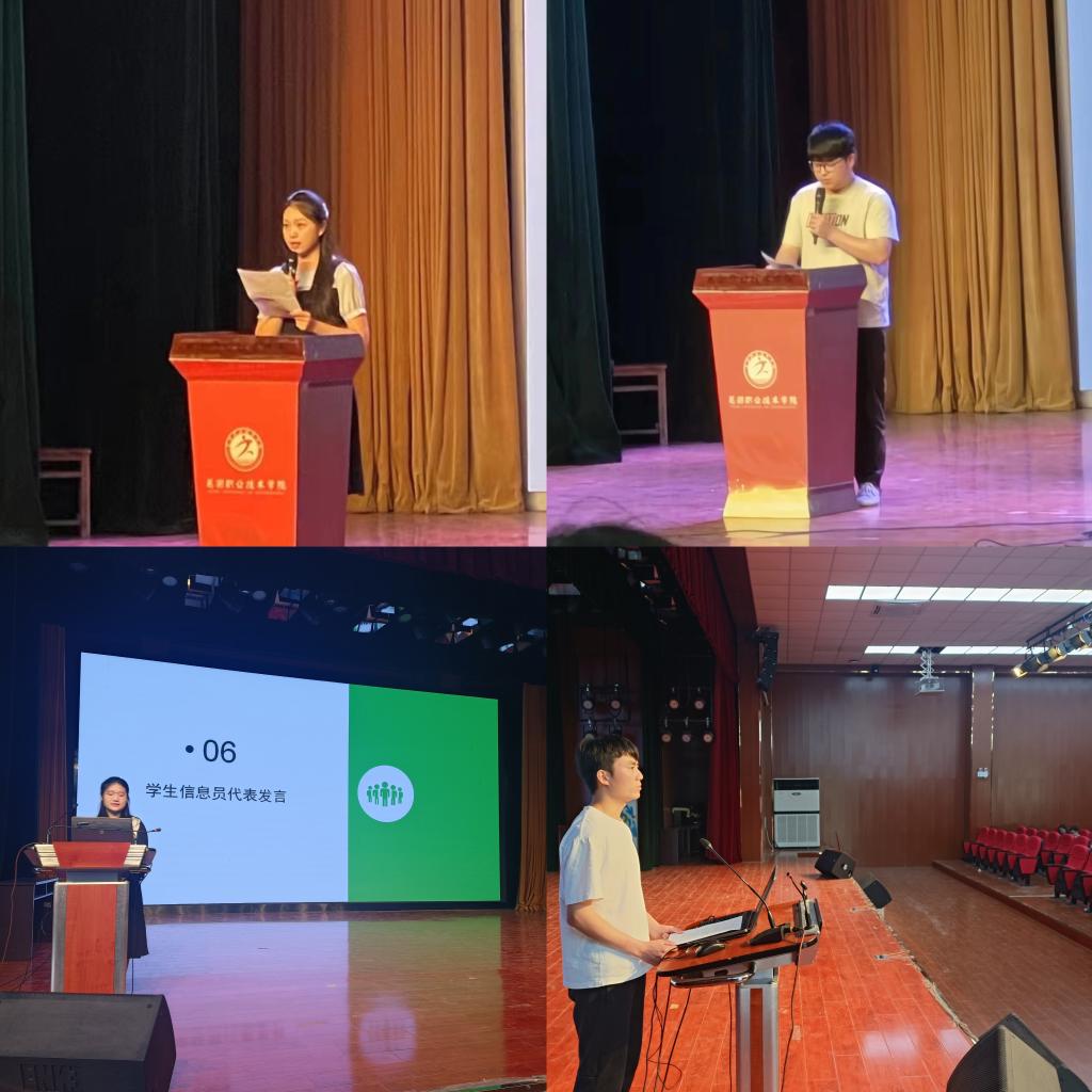 来自经济管理学院、网络工程学院、人文旅游学院、信息与人工智能学院的四位优秀学生信息员代表在会上分享了工作方法、经验与心得体会。